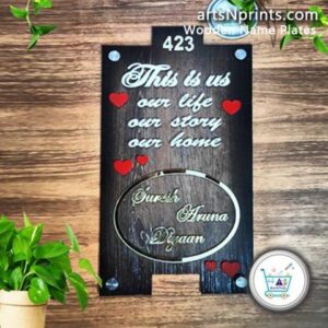 “Modern Couple Quote Wooden Nameplate Designs| Shop under 5000₹ at Tamilnadu.artsnprints.com”