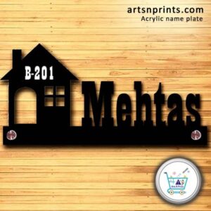 “Modern House Shaped Designer Name Board with Flat Number | Designed by Tamilnadu.artsnprints.com”